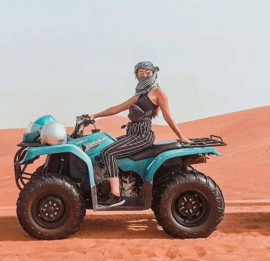Hotel/residence pickup and drop off 150cc-350cc fully automatic quad bikes Flexible ride durations  Safety briefings from professional guides Safety gear Complimentary drinks and water Add-on desert safari activities
